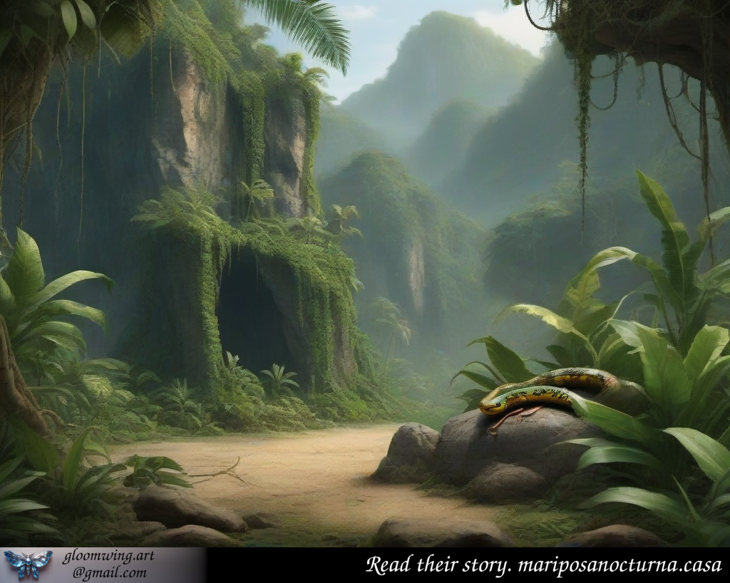 The snake sat on a stone that looked like a green slab, its body gleaming like gold in the sun. Kamari stopped, disoriented. The snake looked at him curiously, and said: "You will find the bull, but only if you allow me to ask why you are looking for him in the rain".