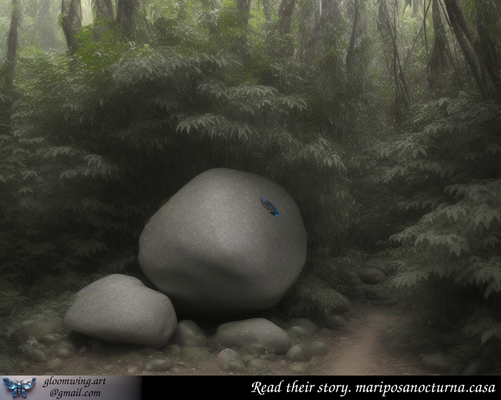 Some time after resuming my hike, in the distance, among the jungle plants, I noticed a stone-the same one I'd passed earlier, heading toward the river over a month ago in this area. I didn't have time to think carefully about it but at the last moment, as I passed it, I noticed something that had nothing to do with nature. On the stone, amid its dark, irregular lines, was an unnatural, rounded shape-something that looked like a flat, blue stone embedded in a boulder. It was nothing that could possibly be there.