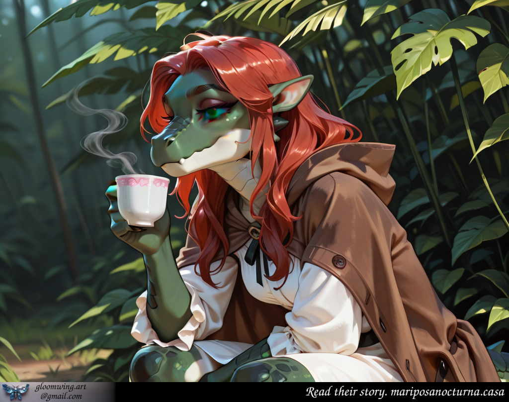 It turns out Silvana had been watching me for a few days now. She'd noticed our group now, and earlier, when we were passing through this area to the archaeological site. It's not like she has any superpowers – yes, she has a fairly good sense of smell and hearing, but it's more a matter of living in the wilderness, far from civilization, which has heightened her senses. It turns out that every time our group passed through this area, the forest sounded... different, in a way that could be compared to the change of tone with the seasons. I admitted that it didn't make much difference to me, so we moved on.